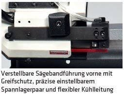 Sichere Sägebandführung - Spannlager vorne zum Werkstück verstellbar